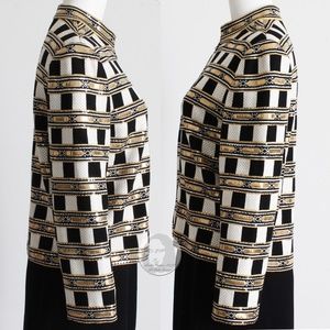 St John Evening Jacket Embellished Knit Gold Black White Zip Front Vintage Sz 10