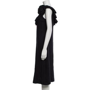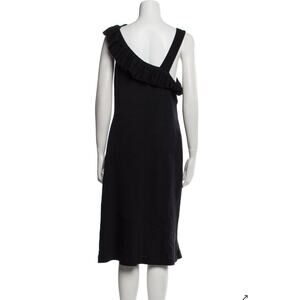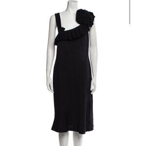 The St. John Evening Navy One Shoulder Dress in size 12 is a stylish and elegant choice for a party or cocktail event. The dress features a beautiful embellished flower detail, adding a touch of sophistication to the solid navy blue color. The one-shoulder design and pencil dress style create a flattering silhouette, while the knit fabric ensures comfort and quality. Perfect for a special occasion, this midi-length dress exudes a chic and feminine vibe.