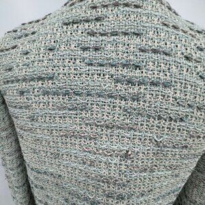 St John Evening Womens Tweed Open Front Jacket Tie Size 8 Light Blue Silver