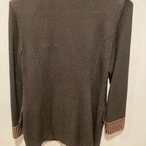 St. John Evening black jacket with copper-colored sequins, size 2. Excellent-quality black knit with wide collar and cuffs completely covered in copper sequins. Front buttons also have copper details. In excellent condition- no visible signs of wear or damage.