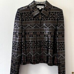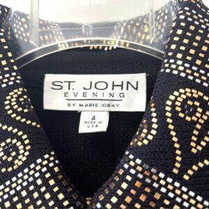 St. John Evening by Marie Gray– Black embellished w/Metallic Pattern , Size 4