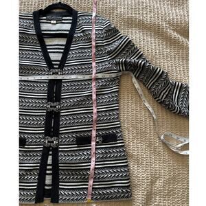 Beautiful black and silver knit paillette jacket, rhinestone closures and buttons, gems woven throughout body,