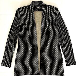 • Note: black front zipper is broken; zipper teeth in tact; no pull for closure, but the jacket looks equally stunning worn open with a camisole or shell