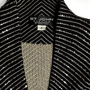 Stunning and sophisticated, this St. John Evening embellished knit suit is a true showstopper. Crafted in classic black with shimmering gold thread and crystal accents, it catches the light beautifully and elevates any special-occasion look.