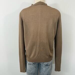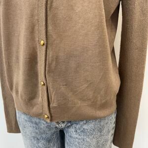 St. John Fine Lurex Cardigan Sweater Long Sleeve in Tan/Light Brown L