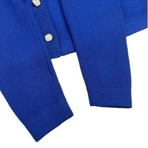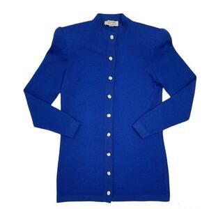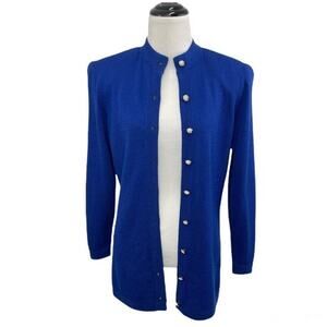 St. John For Neiman Marcus Royal Blue Santana Knit Mock Neck Cardigan Sweater 4