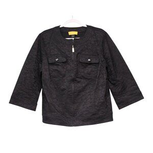 St John Full Zip Jacket Size 14 Black Jacquard Career Old Money Quiet Luxury