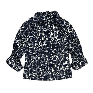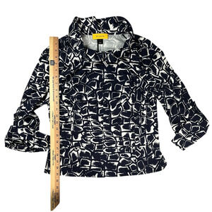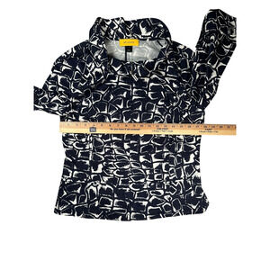 St. John Size 8 Full Zip Jacket Navy White Geometric Print Yellow Label