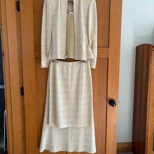 Gold St John shell. Metallic, but not obnoxiously so (see close-up photo). This shell is one of a four-piece set: Jacket, shell, short shirt, long skirt. Available for bundling.
