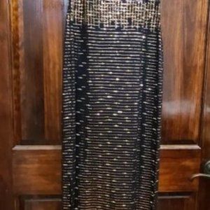 St John Knits full length column formal gown, size 2. Gold metal accents and sequin throughout with a size size zip. and side slit
