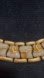 Striking St. John statement necklace featuring sculptural gold-tone links with dimensional inset detailing. The design blends matte and polished gold-tone elements in an articulated collar-style silhouette with substantial presence and weight.