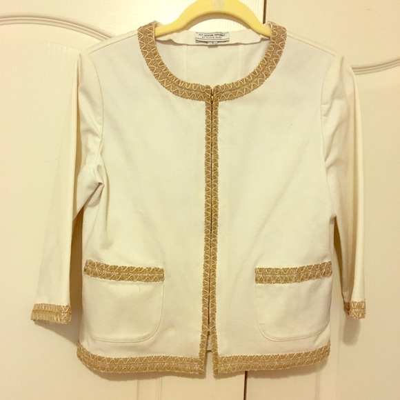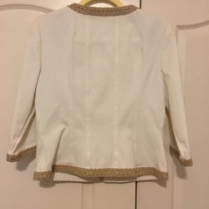 St. John Golden Trim White Blazer! Beautiful St John Sport Collection Blazer with golden stitch trim! Retail $1,100壟