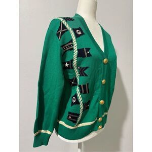 St. John Green jacket sweater with sailboat logo gold front buttons P