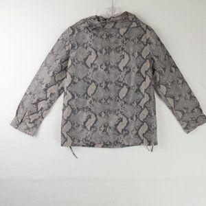 Gray python snake print windbreaker. Ruffle collar. Yellow St. John label.