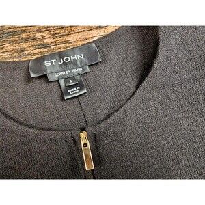 St. John Hand Sewn Suit Black Brown Boucle Knit Zip Jacket 8 Pencil Dress 6 EUC!