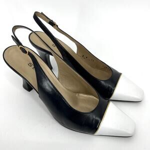 St. John Italy Black White Leather Slingback Heels Shoes Size 8 with Box