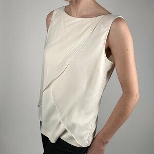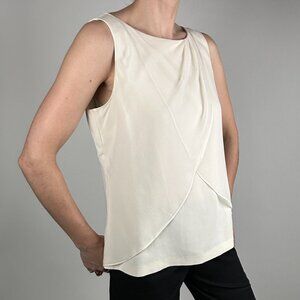 St. John Ivory Cross-Draped Chiffon Overlay Sleeveless Top
