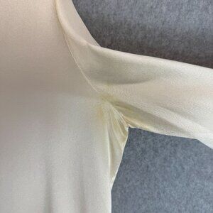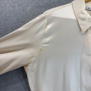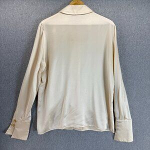 St. John Ivory Silk Button-Up Blouse Size 14 Long Sleeves Gold Buttons FLAWED