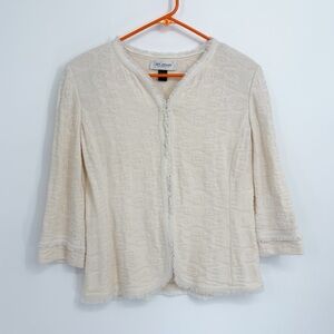 St. John Ivory Textured Front Clasp Wool Blend Jacket
