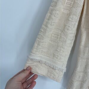 Chic ivory jacket with intricate texture. Ideal for versatile styling.