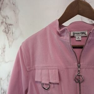 St John Jacket Womens Medium 8 10 Pink Zip Pocket Flip Cuff Bubblegum Light