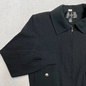 St John Jacket Womens PS Black Caviar Knit Bomber Patch Pockets Retail $890