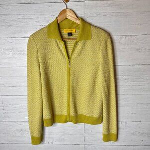 St John Jacket Womens Size P Yellow Label Full Zip Chartreuse Wool Blend Blazer