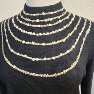 St John Knit Evening Dress black with gold pearl crystal piallettes size 10