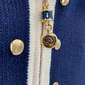 Blue and creme zippered Jacket with gold button details