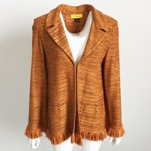 St John Knit Jacket with Fringe Trim Shimmer Thread NWD/NWOT M