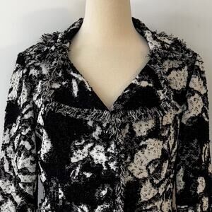 St. John Knit Shimmer Blazer Jacket Fringe Trim Tweed Black/White | Fits like 12