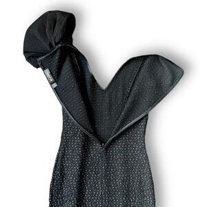 Elevate your evening wear with this impeccable St. John Couture sheath dress. Exemplifying the brand's dedication to fine craftsmanship, this piece features a mesmerizing onyx textured knit fabric that glimmers subtly with each movement.