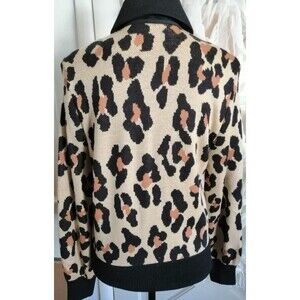 St. John Knit Zip Cardigan Sweater Jacket Leopard Women Size S