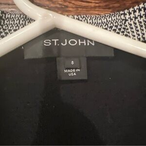 St John Knits Santana Houndstooth Plaid Black White Suit Jacket Blazer Leather 8
