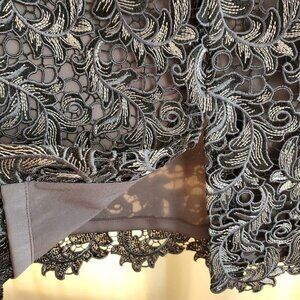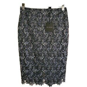 St. John Lace Skirt NWT Size 2 Charcoal Black Floral Overlay $695 Elegant Design