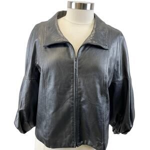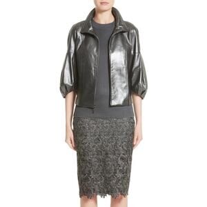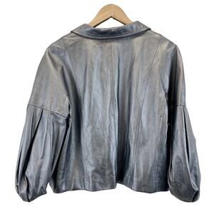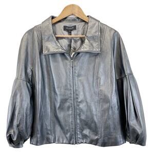St John Leather Jacket Womens Large Pearlized Steel Gray Quiet Luxury Old Money