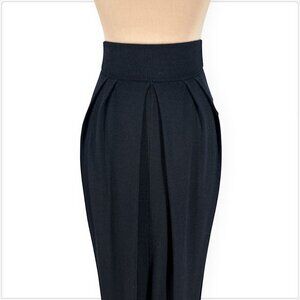 Vintage Marie St. John full length evening skirt with a wide elastic waist, pleated front and sexy slit front detail. Done in the iconic Santana knit that St. John is known for.