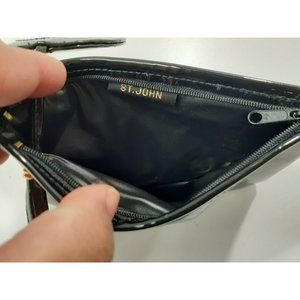 St. John Makeup Wristlet Size 7x5 w/Mirror Black Patent Leather. Pre-Owned in Good Condition. Please see pics. Measurements while laid flat