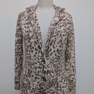 St John Marie Gray Button Down Dress Leopard Cheetah print size 2 Wool Blend