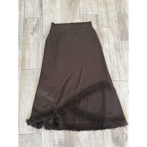 St. John Maxi Santana Knit Pull on Skirt Bottom Fringe Brown Size M Boho