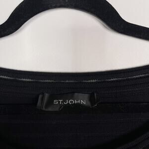 St John Medium M Black 3/4 Sleeve Ottoman Stripe Knit Sweater with Side Lace Up