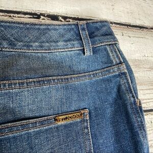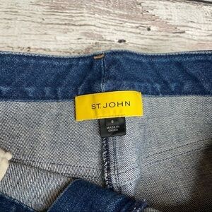 In excellent condition St. John yellow label medium wash straight leg jeans . 98% cotton, 2% polyurethane. features front fly, classic five pocket style, straight leg.