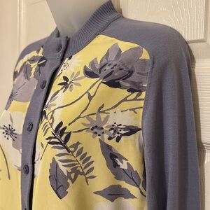 St. John Merino Wool & Silk Floral Panel Button Down Cardigan Size S READ