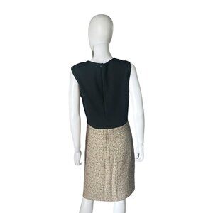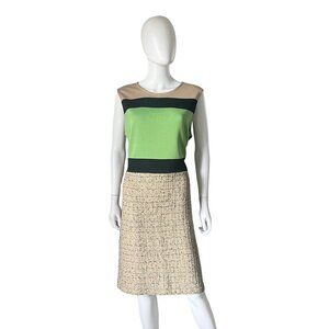 St. John Milano Knit and Tweed Colorblock Dress Green Beige Size 16