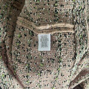 Green, black, beige, cream, wool blend, tweed, Milano knit upper, sleeveless, knee-length, crewneck.
