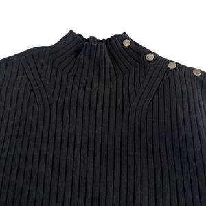 St. John Mock Turtleneck Sleeveless Sweater decorative metal buttons Black L