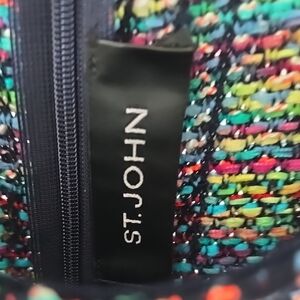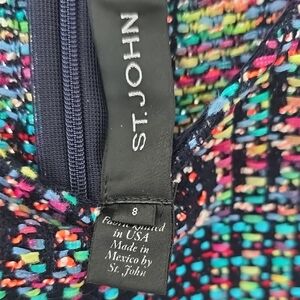 Vibrant multicolor knit garment by St. John. Features a blend of colors for a stylish look. Excellent condition.