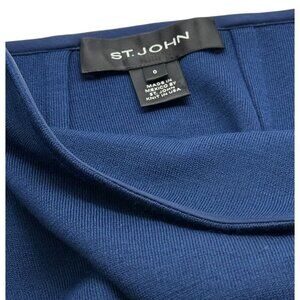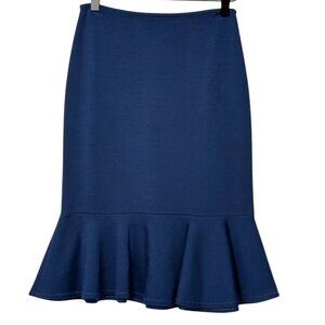St. John Navy Blue Pencil Skirt Ruffle Hem Wool Blend Knee Length Classic Size 0