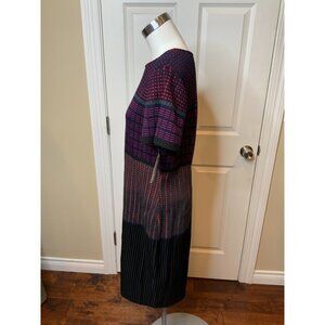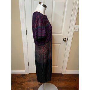 St. John Navy Blue & Red Dot Geometric Print Knit Midi Dress NWT, Size 14