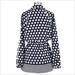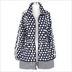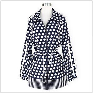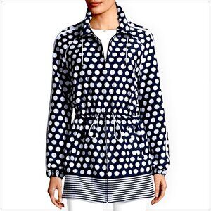 St. John Navy White Polka Dot Print Draw-Cord Waist Anorak Jacket Coat Size S